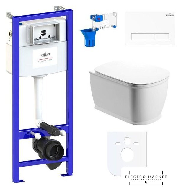 подвесной, без бачка, задний подвод воды, горизонтальный выпуск, двухрежимный слив, с сиденьем