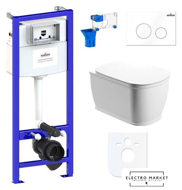 подвесной, без бачка, задний подвод воды, горизонтальный выпуск, двухрежимный слив, с сиденьем