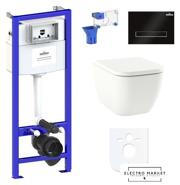 подвесной, конструкция: без бачка, задний подвод воды, горизонтальный выпуск, двухрежимный слив, с сиденьем