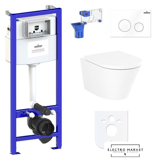 подвесной, конструкция: без бачка, задний подвод воды, горизонтальный выпуск, двухрежимный слив, с сиденьем