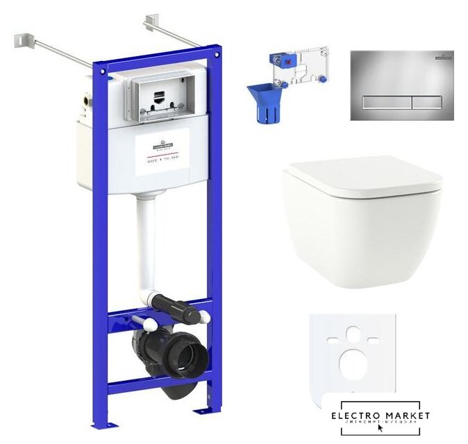 подвесной, конструкция: без бачка, задний подвод воды, горизонтальный выпуск, двухрежимный слив, с сиденьем