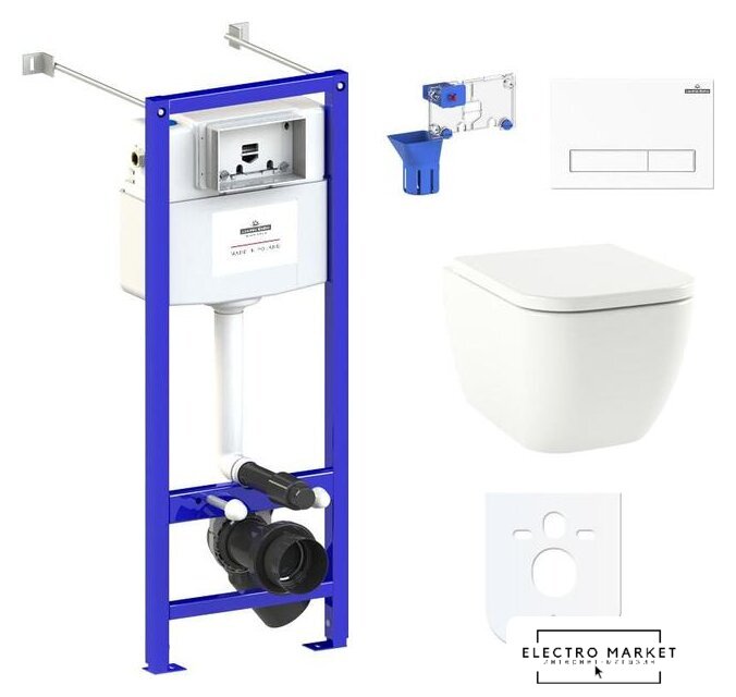 подвесной, конструкция: без бачка, задний подвод воды, горизонтальный выпуск, двухрежимный слив, с сиденьем