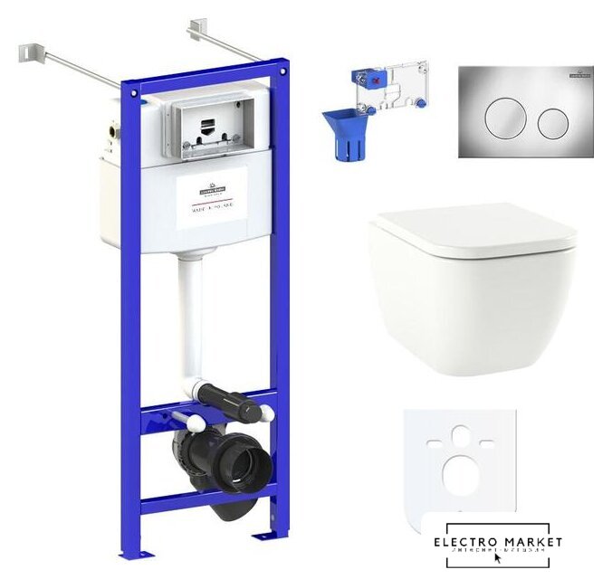 подвесной, конструкция: без бачка, задний подвод воды, горизонтальный выпуск, двухрежимный слив, с сиденьем