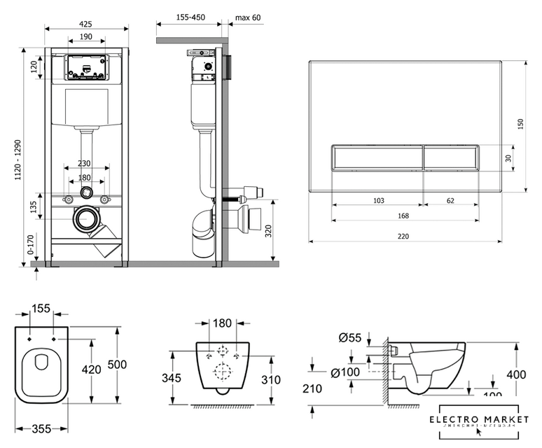 подвесной, конструкция: без бачка, двухрежимный слив по цене 1 265,00 руб.