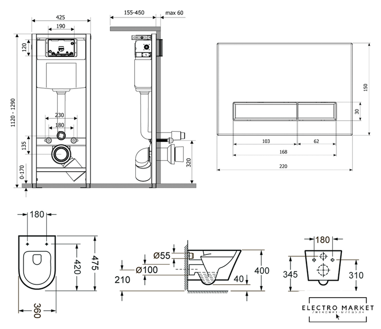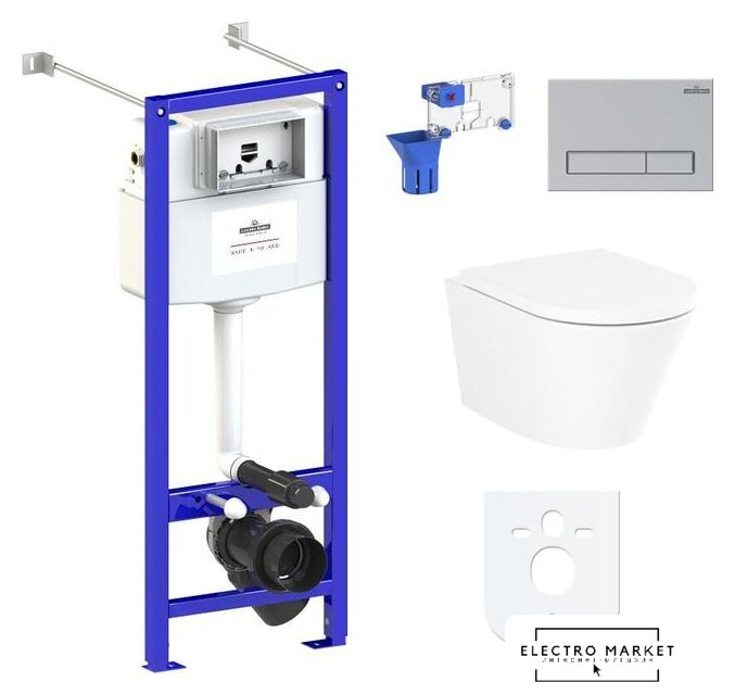 подвесной, конструкция: без бачка, задний подвод воды, горизонтальный выпуск, двухрежимный слив, с сиденьем
