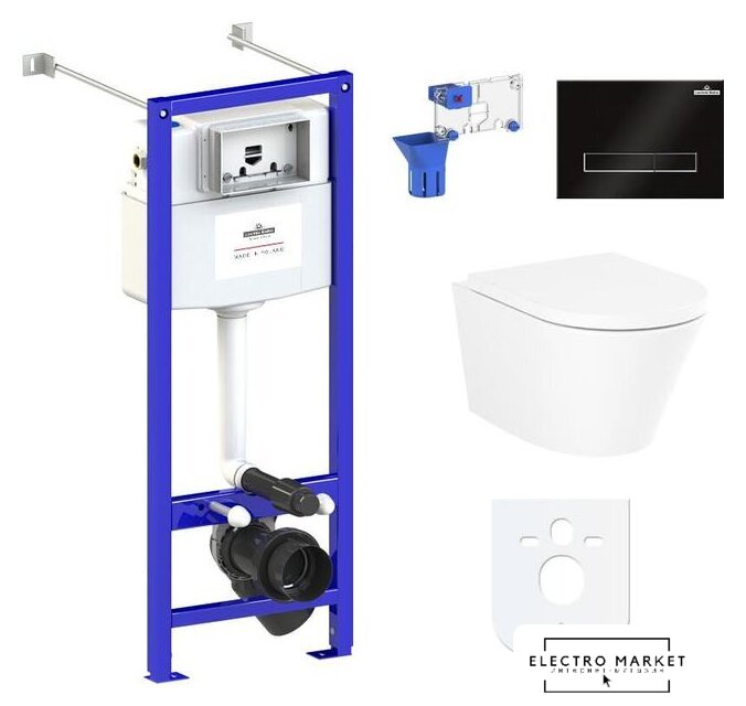 Унитаз подвесной Lavinia Boho Biore Compacto Rimless 7 в 1 87050178 (черное стекло)