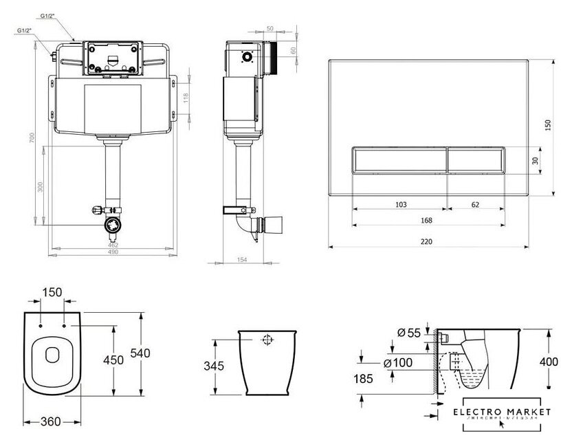 приставной, конструкция: без бачка, двухрежимный слив по цене 908,00 руб.