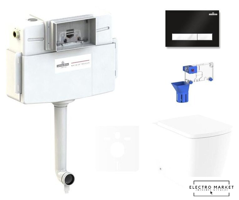 приставной, низкорасположенный бачок, задний подвод воды, универсальный выпуск, двухрежимный слив, с сиденьем