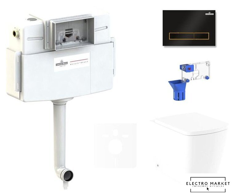 приставной, низкорасположенный бачок, задний подвод воды, универсальный выпуск, двухрежимный слив, с сиденьем