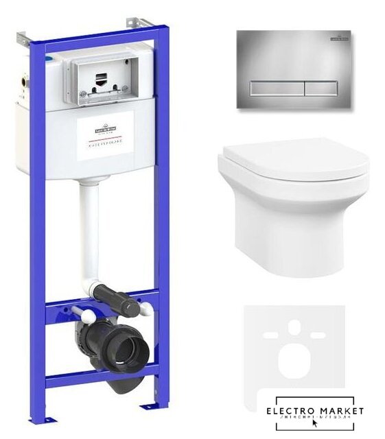 подвесной, без бачка, задний подвод воды, горизонтальный выпуск, двухрежимный слив, с сиденьем