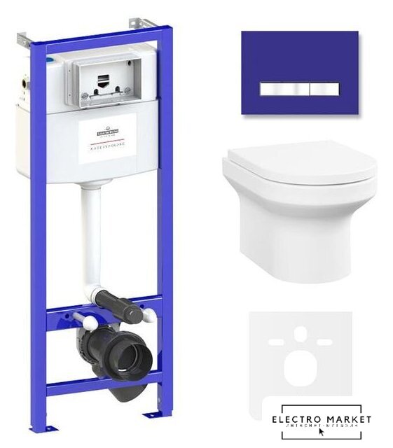 подвесной, без бачка, задний подвод воды, горизонтальный выпуск, двухрежимный слив, с сиденьем