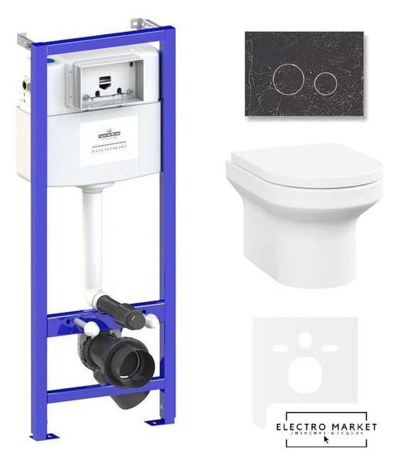 подвесной, конструкция: без бачка, задний подвод воды, горизонтальный выпуск, двухрежимный слив, с сиденьем