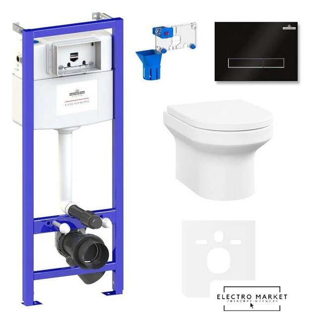 подвесной, без бачка, задний подвод воды, горизонтальный выпуск, двухрежимный слив, с сиденьем