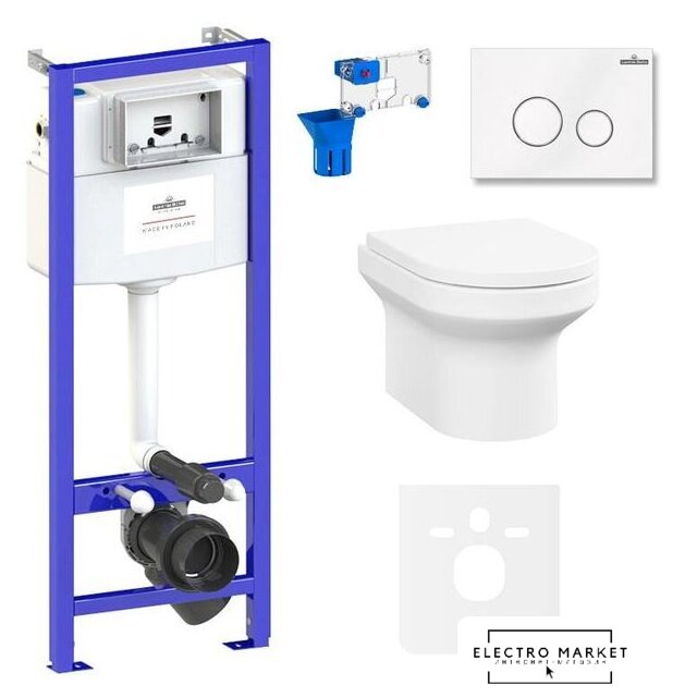 подвесной, конструкция: без бачка, задний подвод воды, горизонтальный выпуск, двухрежимный слив, с сиденьем