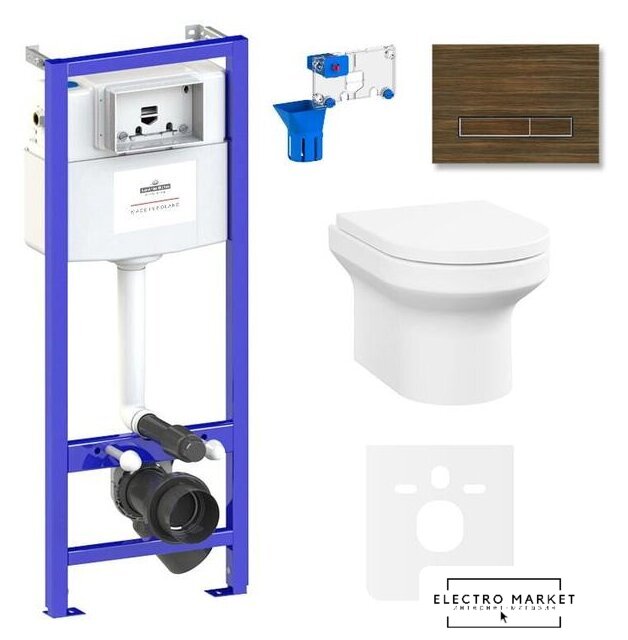 подвесной, без бачка, задний подвод воды, горизонтальный выпуск, двухрежимный слив, с сиденьем