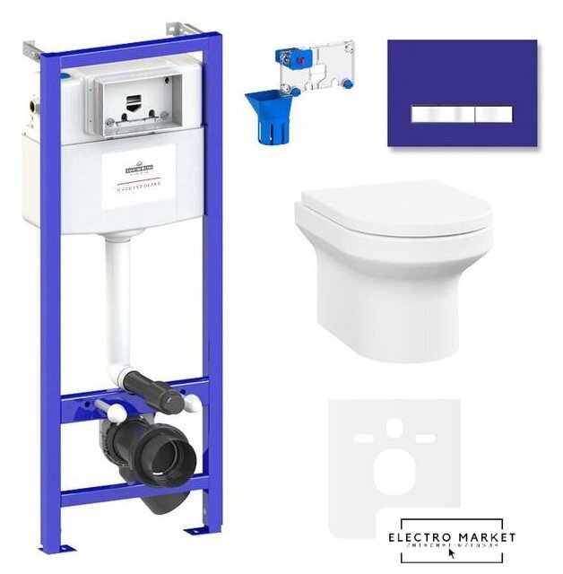 подвесной, конструкция: без бачка, задний подвод воды, горизонтальный выпуск, двухрежимный слив, с сиденьем, безободковый