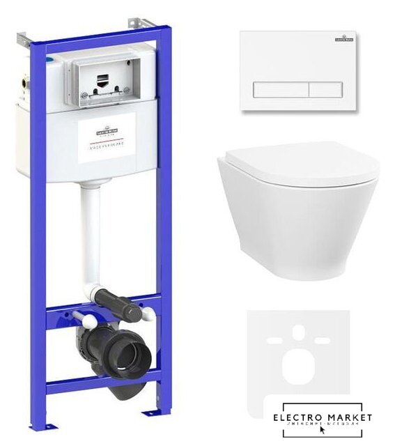 подвесной, конструкция: без бачка, задний подвод воды, горизонтальный выпуск, двухрежимный слив, с сиденьем, безободковый