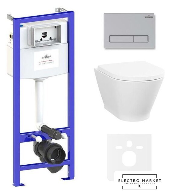 подвесной, конструкция: без бачка, задний подвод воды, горизонтальный выпуск, двухрежимный слив, с сиденьем, безободковый