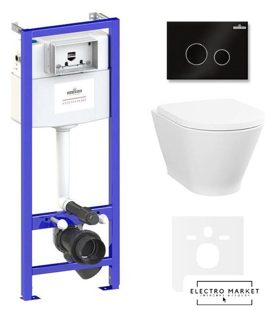 подвесной, без бачка, задний подвод воды, горизонтальный выпуск, двухрежимный слив, с сиденьем