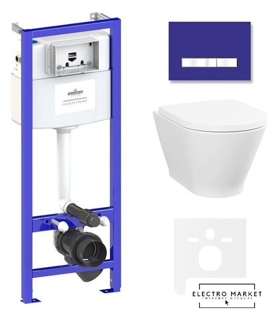 подвесной, без бачка, задний подвод воды, горизонтальный выпуск, двухрежимный слив, с сиденьем