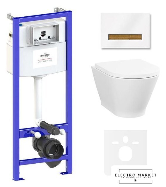 подвесной, без бачка, задний подвод воды, горизонтальный выпуск, двухрежимный слив, с сиденьем