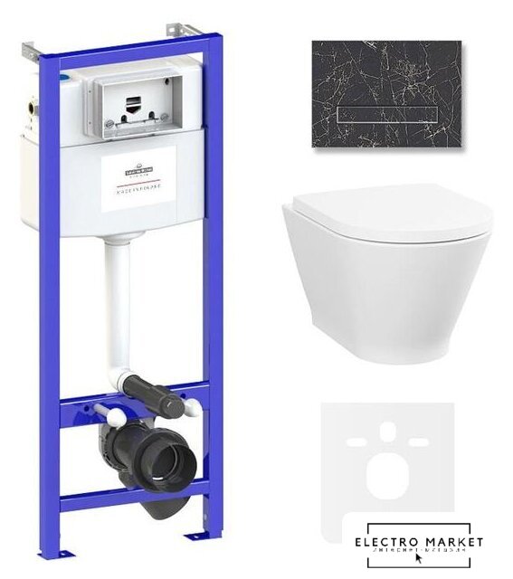 подвесной, конструкция: без бачка, задний подвод воды, горизонтальный выпуск, двухрежимный слив, с сиденьем