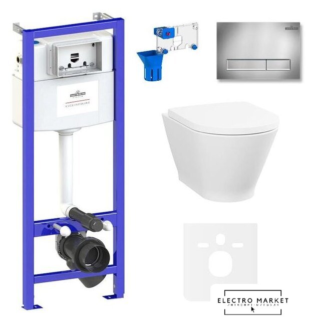подвесной, конструкция: без бачка, задний подвод воды, горизонтальный выпуск, двухрежимный слив, с сиденьем