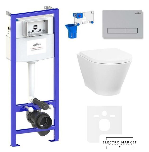 подвесной, без бачка, задний подвод воды, горизонтальный выпуск, двухрежимный слив, с сиденьем