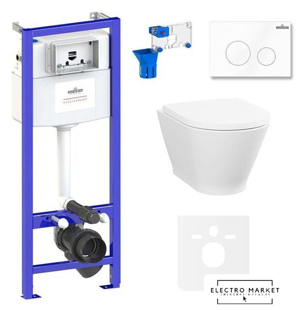 подвесной, без бачка, задний подвод воды, горизонтальный выпуск, двухрежимный слив, с сиденьем