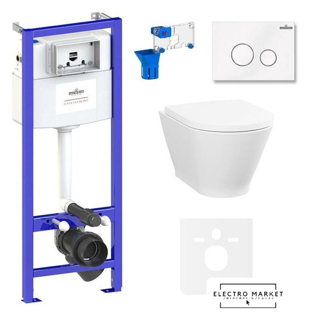подвесной, без бачка, задний подвод воды, горизонтальный выпуск, двухрежимный слив, с сиденьем