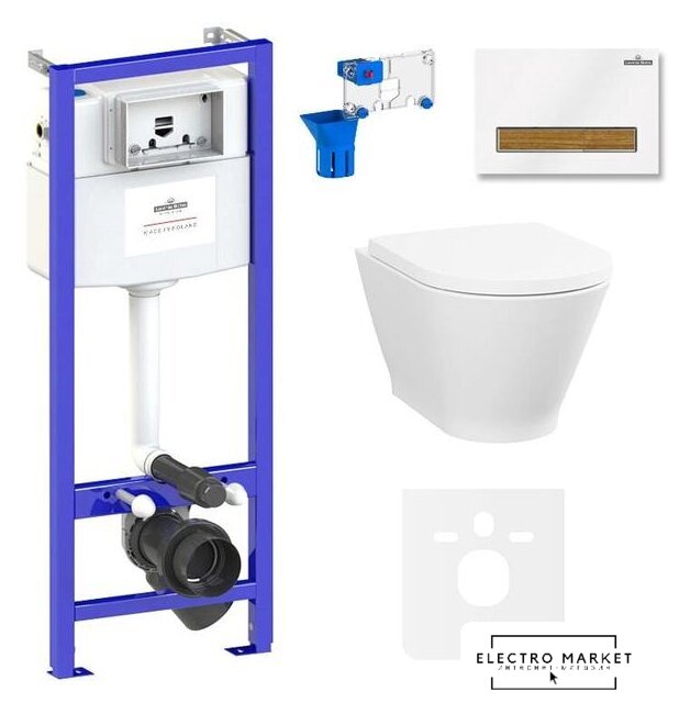 подвесной, без бачка, задний подвод воды, горизонтальный выпуск, двухрежимный слив, с сиденьем