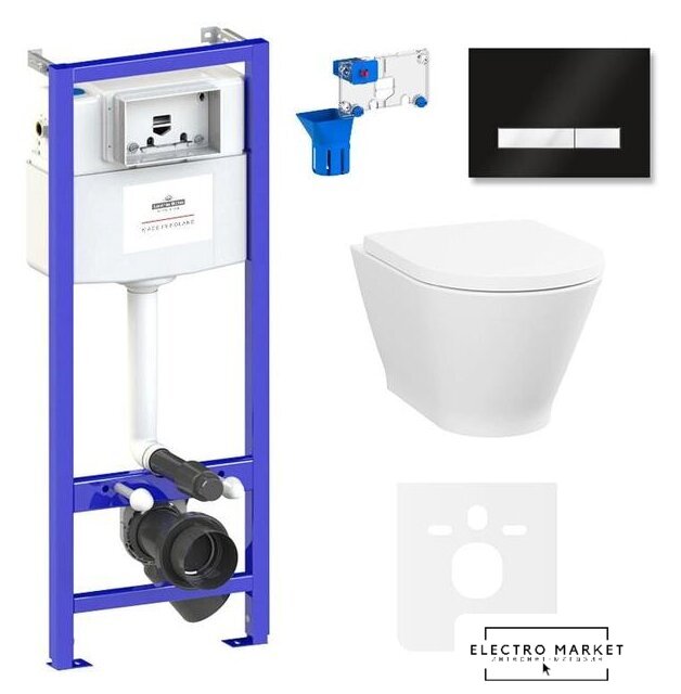 подвесной, без бачка, задний подвод воды, горизонтальный выпуск, двухрежимный слив, с сиденьем