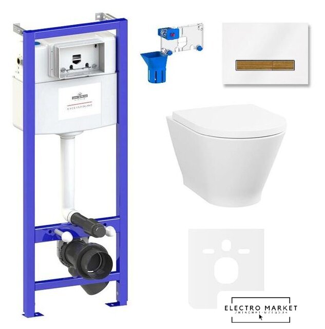 подвесной, без бачка, задний подвод воды, горизонтальный выпуск, двухрежимный слив, с сиденьем