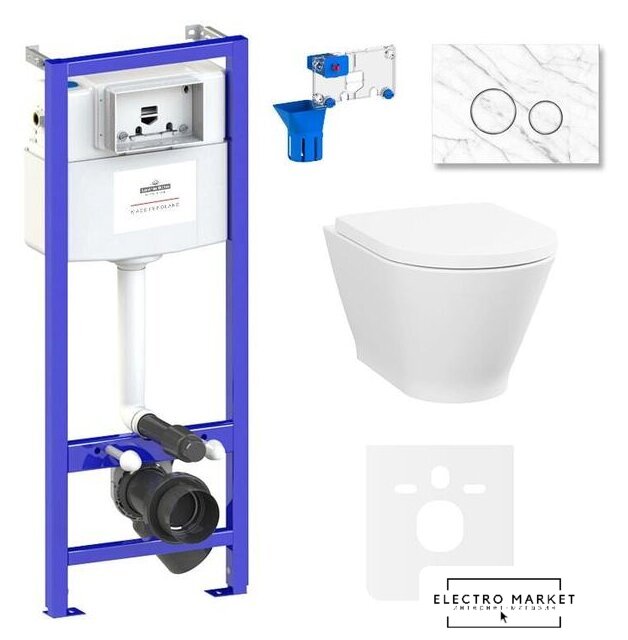 подвесной, конструкция: без бачка, задний подвод воды, горизонтальный выпуск, двухрежимный слив, с сиденьем