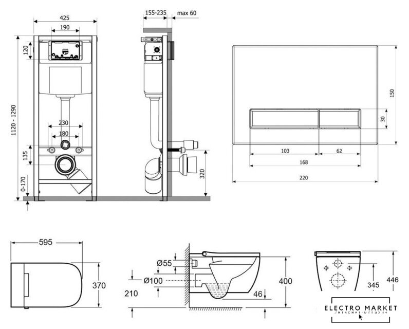 подвесной, конструкция: без бачка, двухрежимный слив по цене 4 132,00 руб.