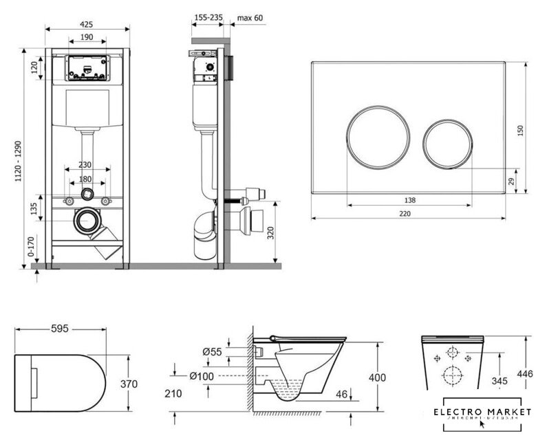 подвесной, конструкция: без бачка, двухрежимный слив по цене 4 060,00 руб.