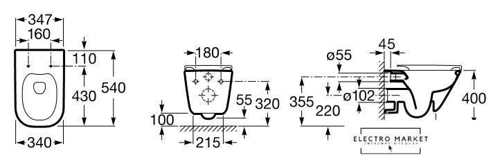 подвесной, конструкция: без бачка, задний подвод воды, горизонтальный выпуск, двухрежимный слив, с сиденьем, безободковый