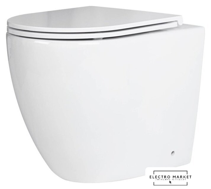 подвесной, конструкция: без бачка, задний подвод воды, горизонтальный выпуск, однорежимный слив, с сиденьем, безободковый