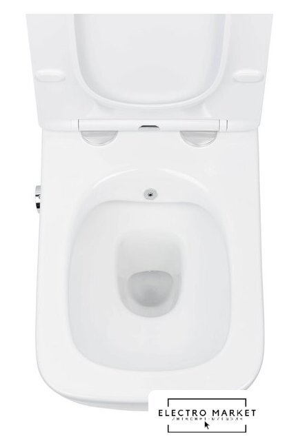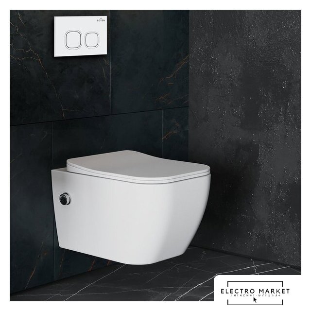 подвесной, без бачка, задний подвод воды, горизонтальный выпуск, двухрежимный слив, с сиденьем