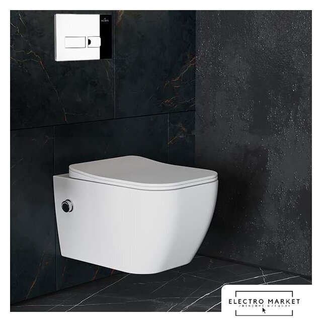 подвесной, без бачка, задний подвод воды, горизонтальный выпуск, двухрежимный слив, с сиденьем
