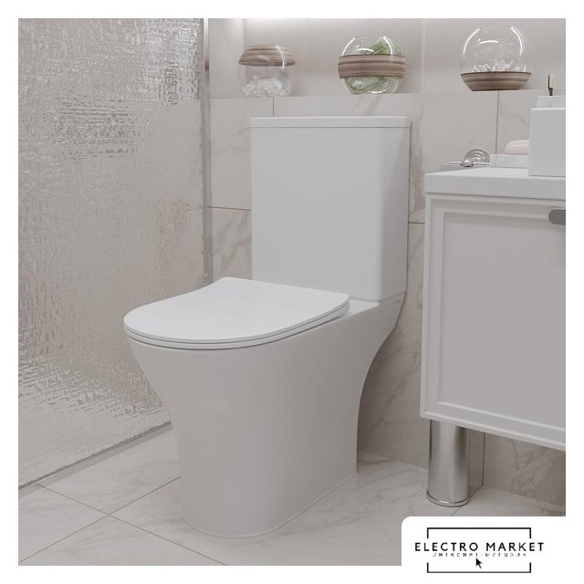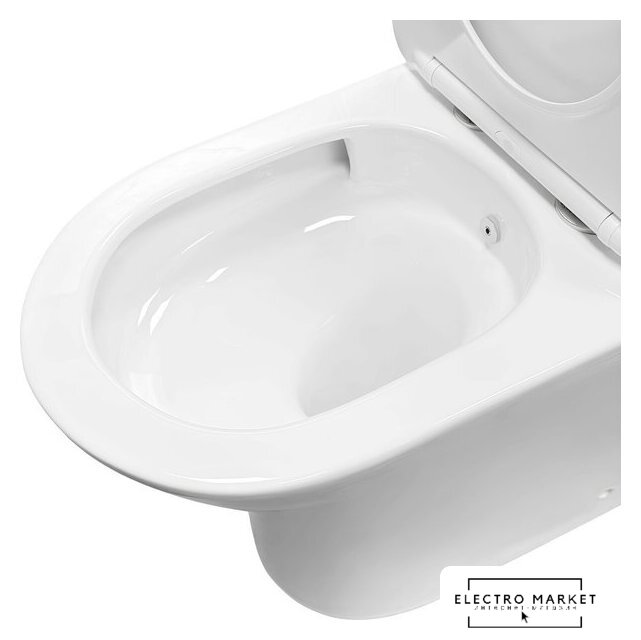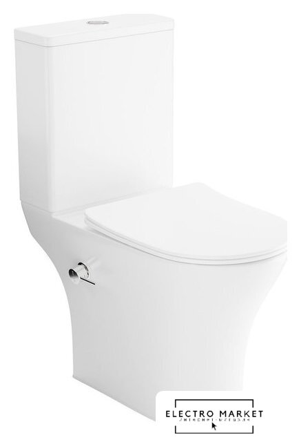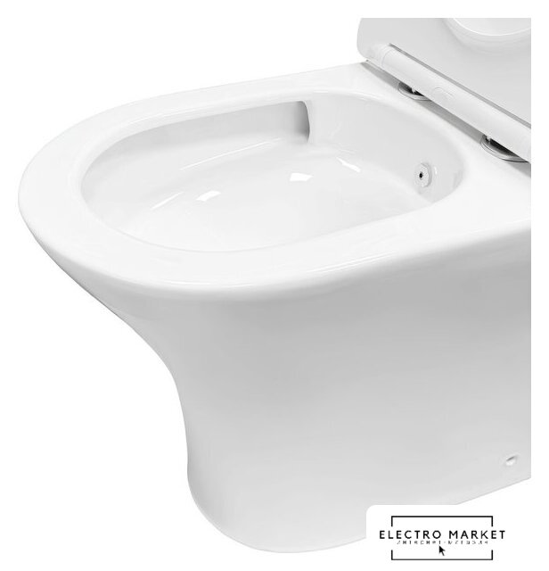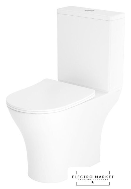 напольный, конструкция: компакт, задний подвод воды, горизонтальный выпуск, однорежимный слив, с сиденьем, безободковый