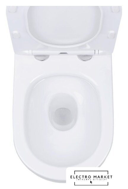 подвесной, конструкция: без бачка, задний подвод воды, горизонтальный выпуск, двухрежимный слив, с сиденьем, безободковый