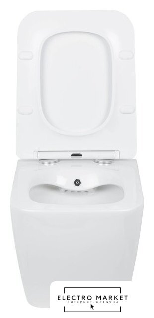 подвесной, без бачка, задний подвод воды, горизонтальный выпуск, двухрежимный слив, с сиденьем