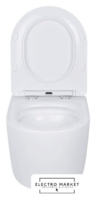 подвесной, конструкция: без бачка, задний подвод воды, горизонтальный выпуск, двухрежимный слив, с сиденьем, безободковый