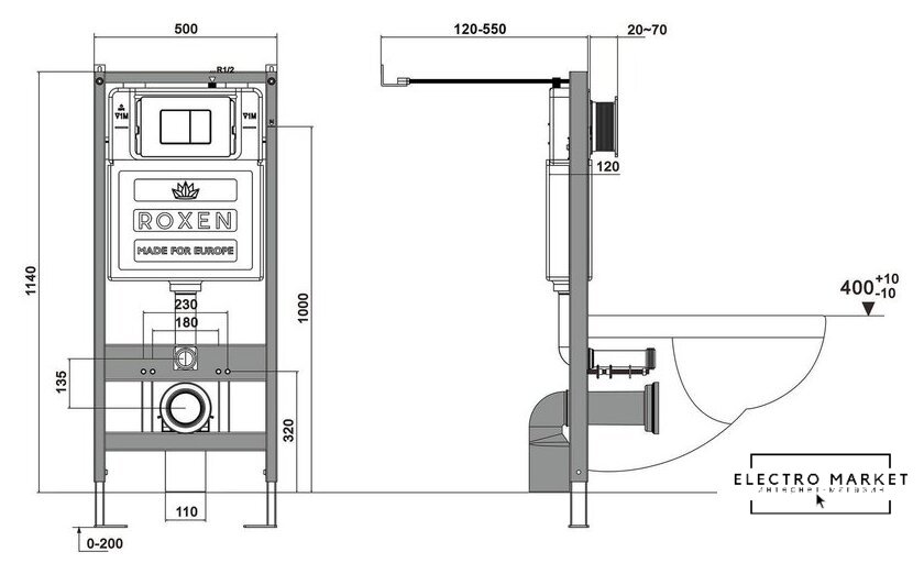 | Отверстия под инсталляцию | 180 мм, 230 мм |