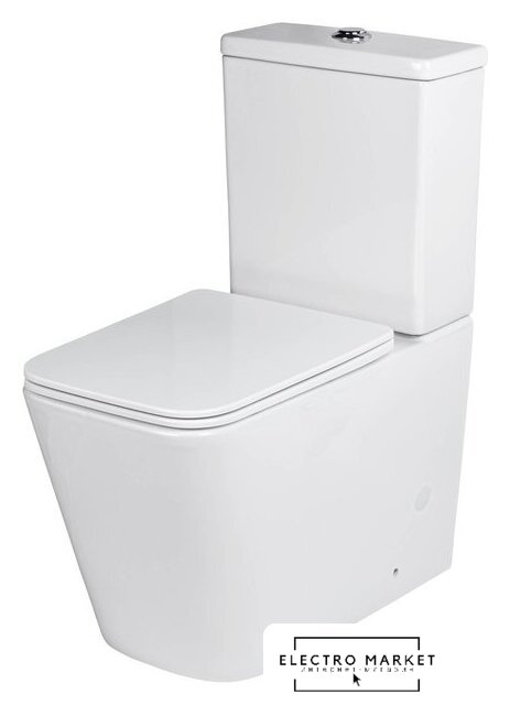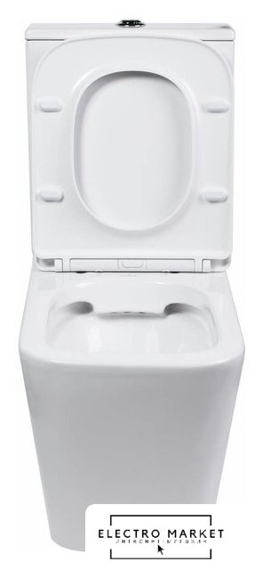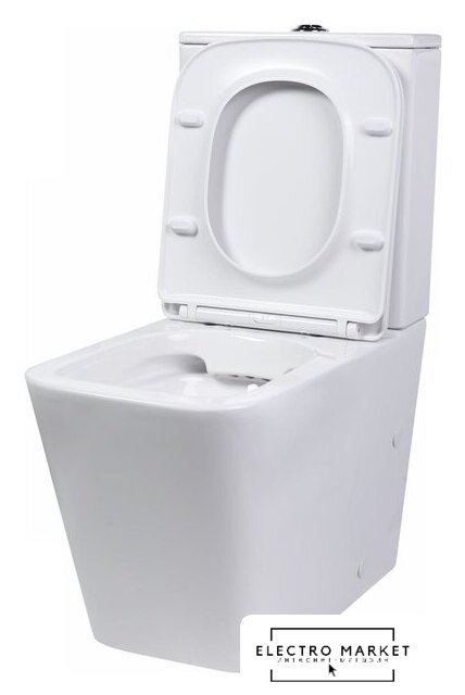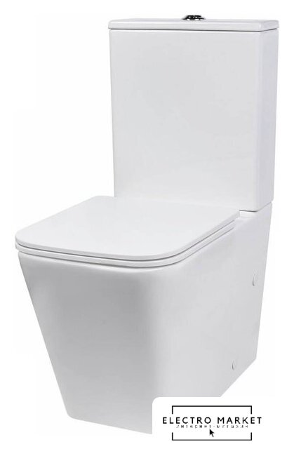 напольный, конструкция: компакт, нижний подвод воды, горизонтальный выпуск, двухрежимный слив, с сиденьем, безободковый