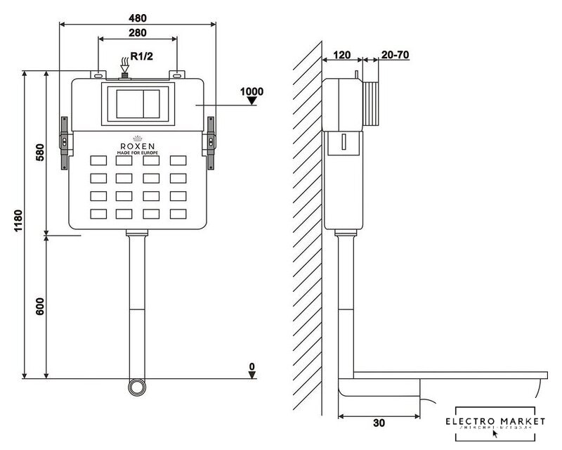 | Подвод воды | задний |