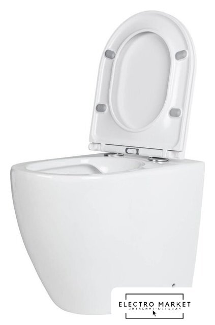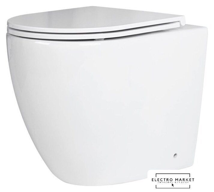 приставной, конструкция: без бачка, задний подвод воды, горизонтальный выпуск, двухрежимный слив, с сиденьем, безободковый