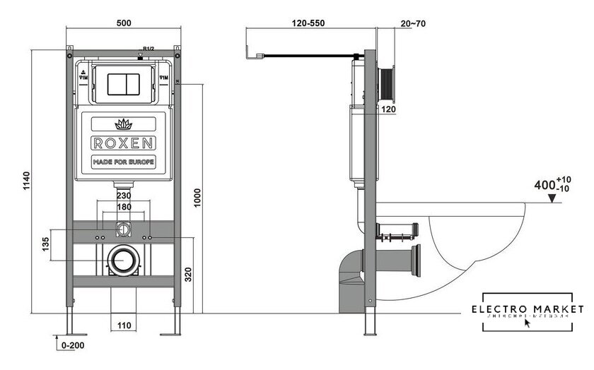 | Отверстия под инсталляцию | 180 мм, 230 мм |