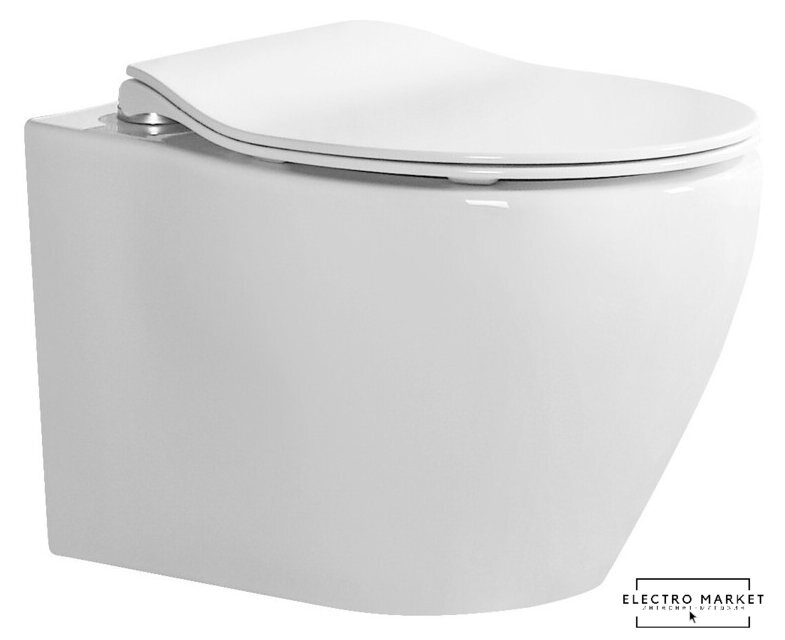 подвесной, конструкция: без бачка, задний подвод воды, горизонтальный выпуск, двухрежимный слив, с сиденьем, безободковый
